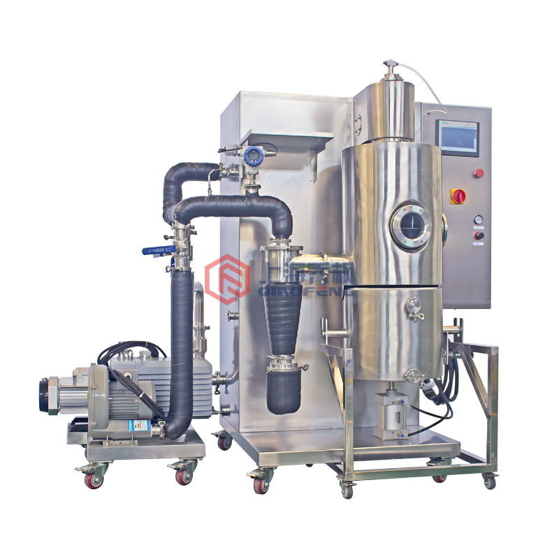 QFN-FSD-1 laboratory freeze spray dryer is suitable for heat sensitive, viscous, active materials and low temperature drying of materials with high sugar content, such as natural product extract of Chinese herbal medicine, dairy products, biological agents, enzyme preparations, fruit juice, polymer materials and so on.