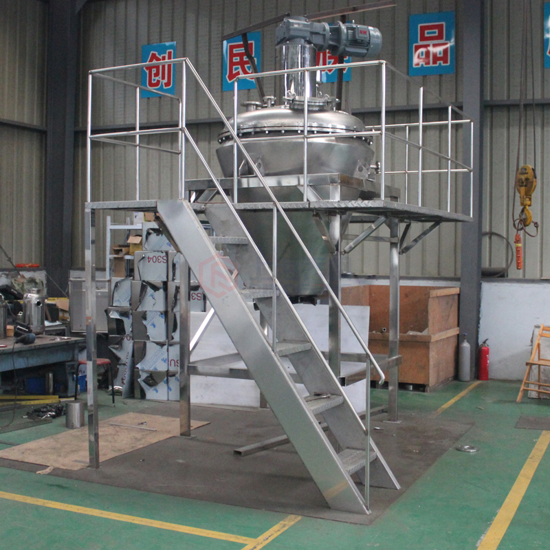 本機由加熱錐體設有加熱夾套,熱源為熱水、導熱油或低壓蒸汽,從而使錐體內壁保持一定的的溫度。變頻調速電機經平行斜齒輪減速機,驅動單螺帶攪拌器旋轉,帶動物料沿錐型筒旋轉并自下而上提升,物料到達頂后由重力和慣性作用,自動流向旋渦中心回到錐型筒體底部,整個過程使物料在錐型筒體內強制加熱,相對對流、摻混,熱量在物料中相互擴散,使物料作不規則往復運動,完成物料在筒壁表面進行高頻率傳熱交換,在短時間內達到加熱干燥的效果。從而使物料內部水份不斷蒸發,在真空泵的作用下,水蒸汽由真空泵引出,如須回收液體可加冷凝器、回收液儲罐回收。干燥完成后,打開下部的出料閥出料。