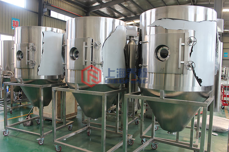 噴霧裝置是離心式噴霧干燥技術原理在特定物料干燥中的應用,也是利用高速離心式霧化器使物料分散成細,與熱空氣充分接觸,完成瞬間干燥,形成粉狀成品的干燥裝置。該干燥設備是專門用來解決中藥浸膏和植物提取液的噴霧干燥機,它有效地解決了原LPG高速噴霧干燥機在中藥浸膏干燥中出現的粘壁、焦化、收粉率低、產量低等問題。