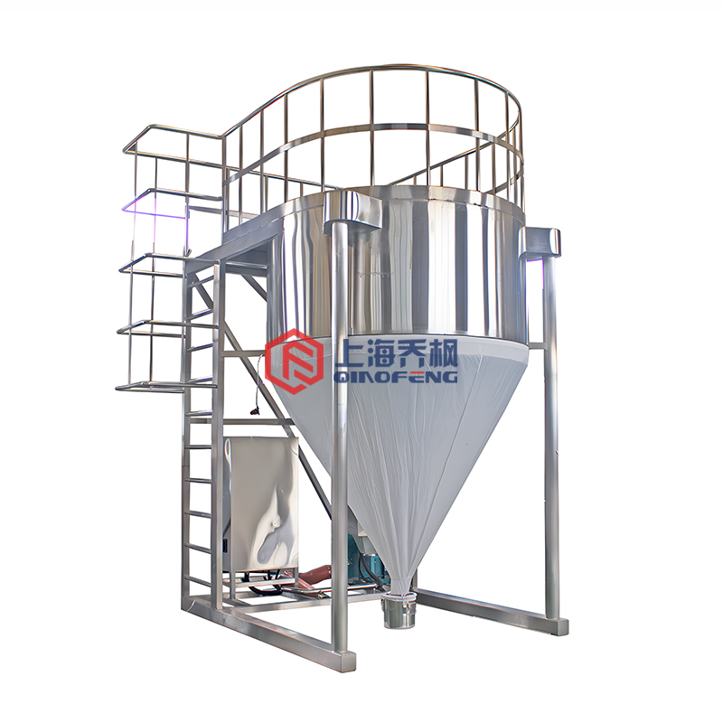 普通的噴霧干燥機的干燥室是用不銹鋼制成的,收粉另需旋風分離器等設備,而袋式噴霧干燥機的干燥室是一個拆裝方便的大布袋,因此粉體產(chǎn)品不分粗細皆于袋底一處回收,特別適用于精密陶瓷等產(chǎn)品粒徑不需分級的造粒和干燥。
