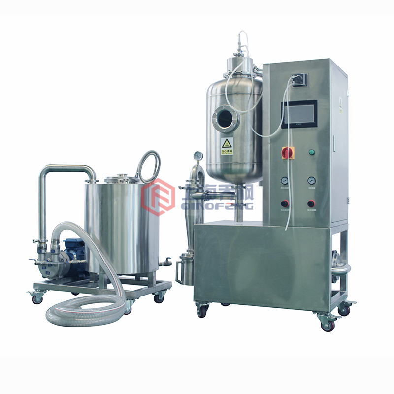 QFN-VSD-1 實驗型真空噴霧干燥機(QFN-VSD-1超低溫噴霧干燥機)是上海喬楓實業(yè)設備有限公司在噴霧干燥領(lǐng)域深耕12年的創(chuàng)新產(chǎn)品,是熱敏性物料快速干燥的方式,實現(xiàn)了低溫條件(80 ℃)物料的瞬間干燥,為熱敏物料提供了極為方便極為安全的干燥方法,如酶制劑活菌等生物制品,含糖量高的中藥天然產(chǎn)物提取物,不耐熱的高分子材料,遇熱氣化的材料等等。