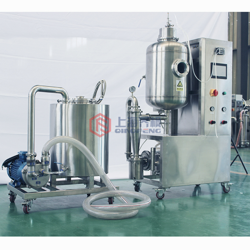1)QFN-VSD-1 實驗型真空噴霧干燥機噴霧干燥整個干燥過程在真空環(huán)境里完成,大大降低了物料干燥溫度,解決了熱敏性物料含糖物料生物材料噴霧干燥的難題。